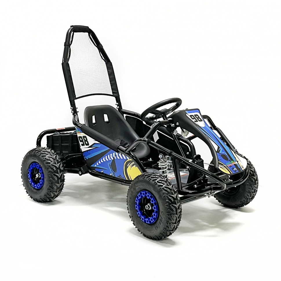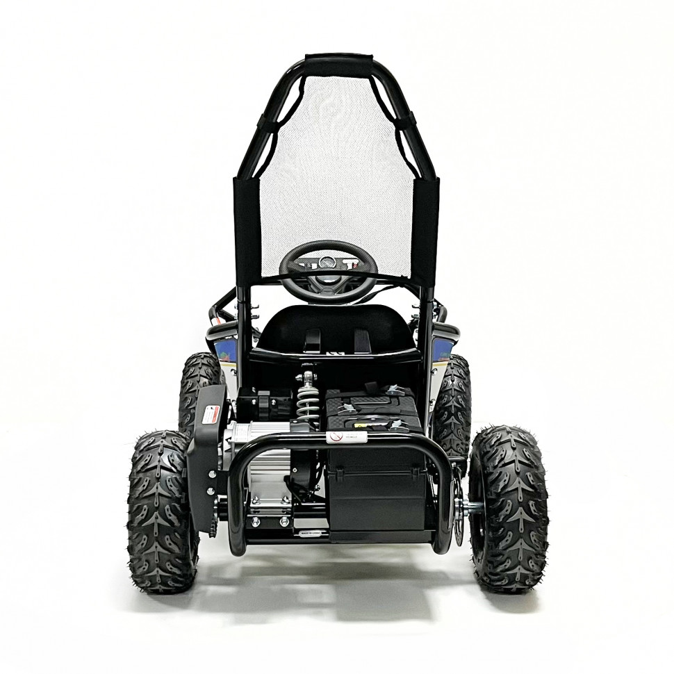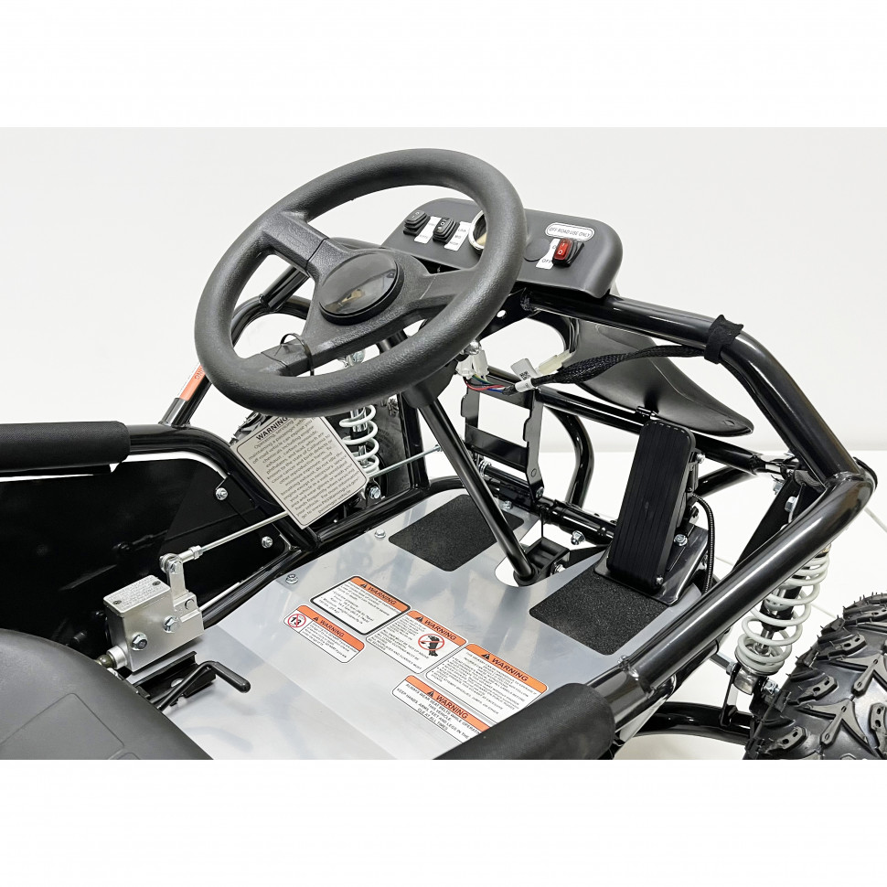 Благодаря цепной передаче на заднюю ось, багги обеспечивает отличную маневренность и проходимость, позволяя легко справляться с различными препятствиями на пути. Это делает его идеальным для использования в парках, на дачах и в лесных зонах.