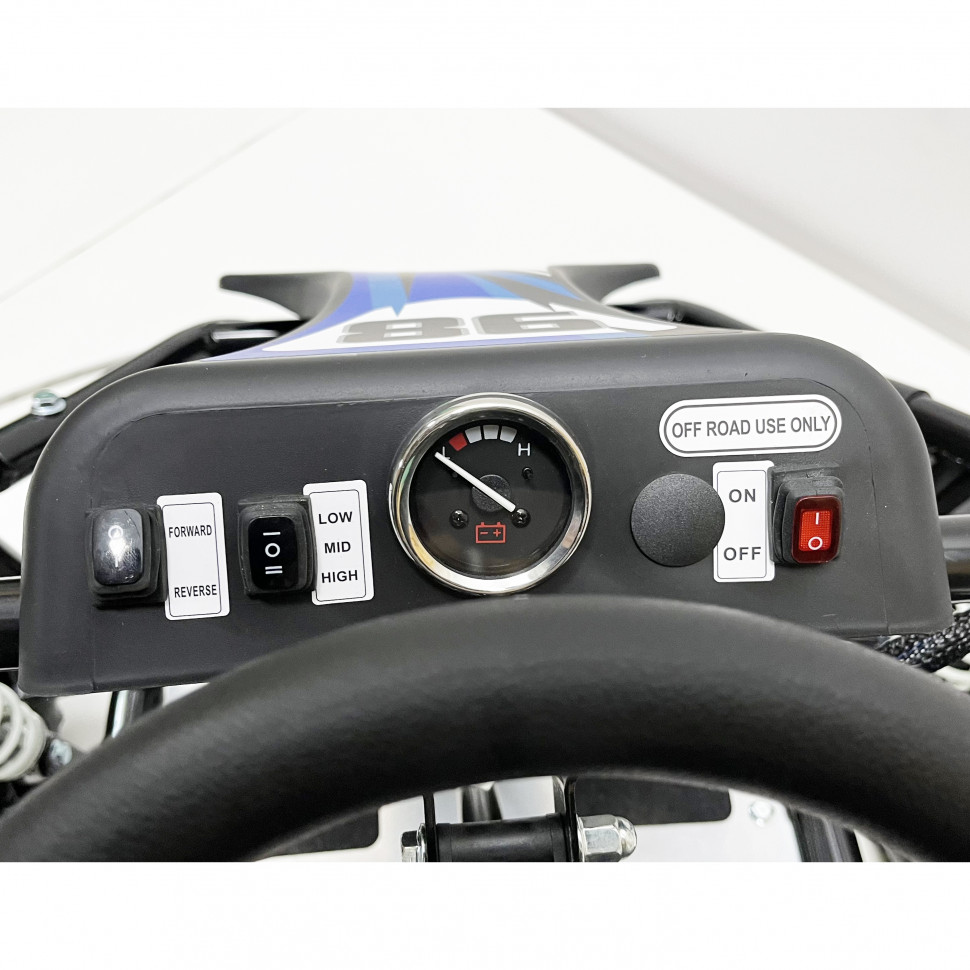 Багги работает на аккумуляторе SLA GEL с напряжением 48 В и ёмкостью 20 Ah, что обеспечивает пробег до 25 км на одном заряде. Срок службы аккумулятора составляет до 700 циклов, что делает его надежным источником энергии для длительных поездок.