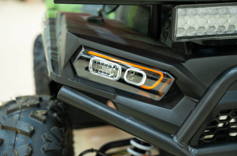 Квадроцикл оснащен множеством полезных функций, таких как LED-фары для хорошей видимости в темноте и спидометр для контроля скорости. Задние и передние багажники позволяют удобно перевозить необходимые вещи, что делает его идеальным для поездок на природу.