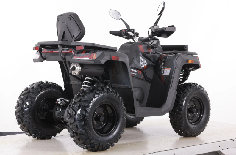 Передняя маятниковая (рычажная) подвеска обеспечивает отличную амортизацию и управляемость на неровной местности. С дорожным просветом в 150 мм и высотой по сидению 800 мм, квадроцикл подходит для пользователей ростом от 150 см, что делает его доступным для широкой аудитории.