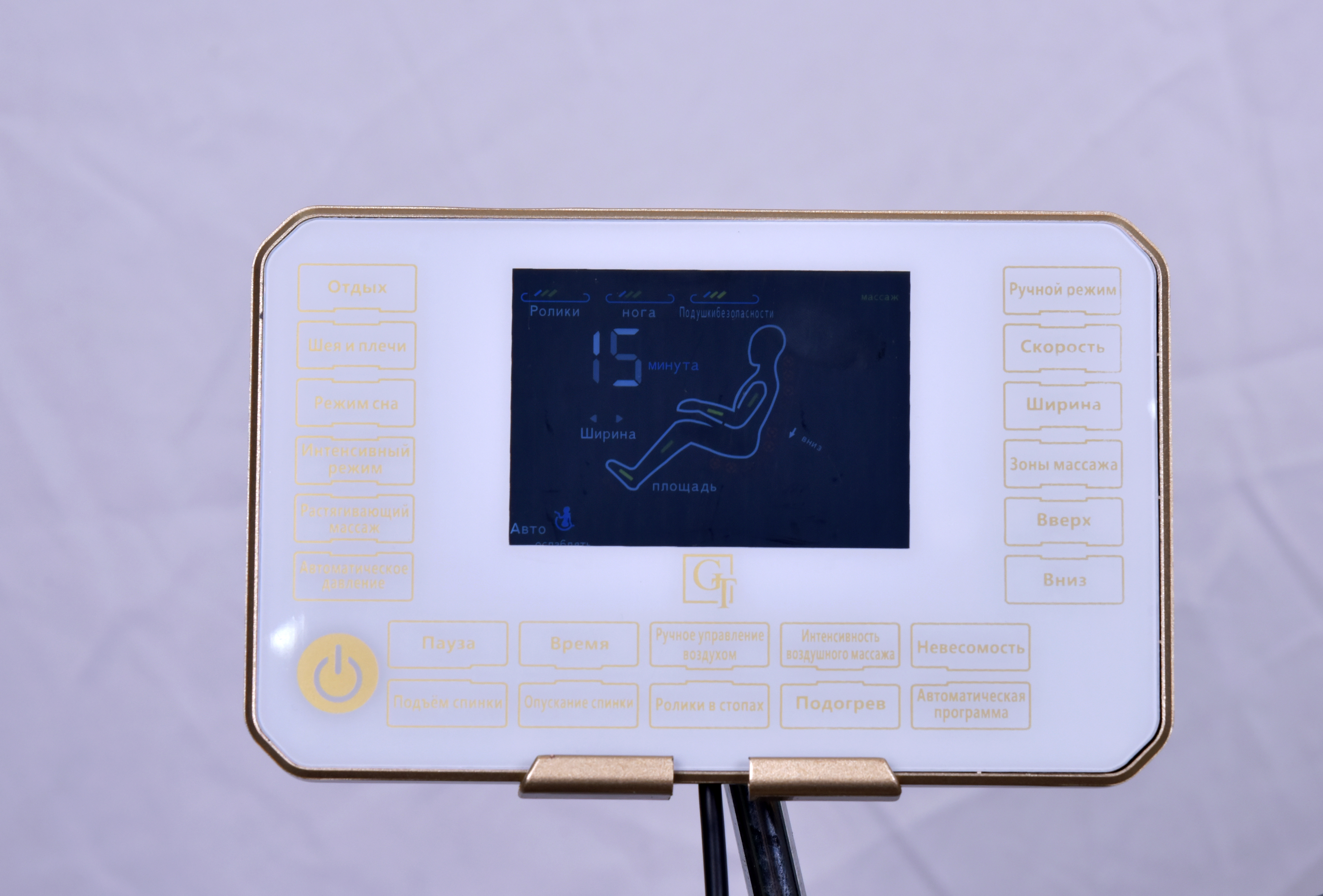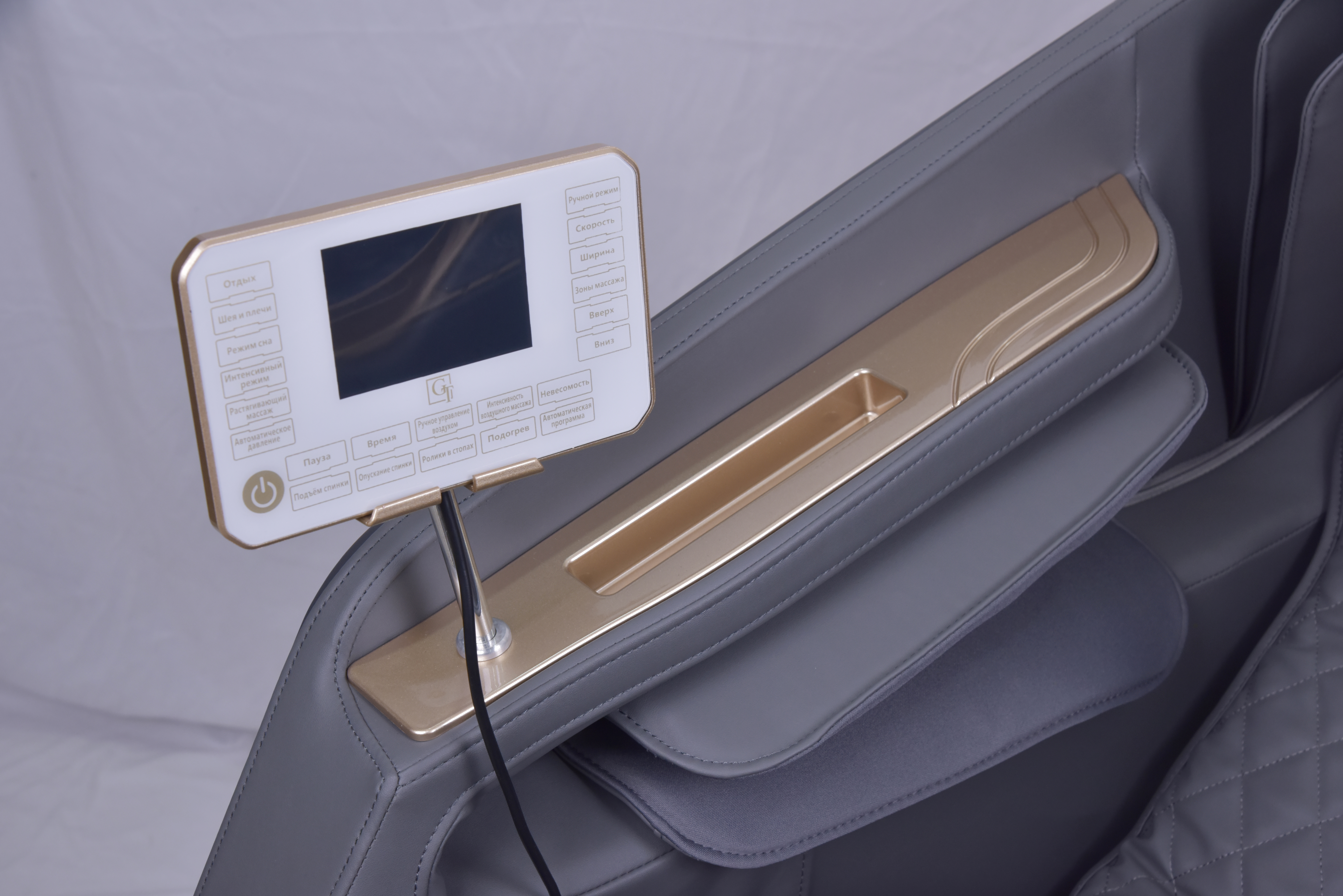 GT K37 предлагает трехуровневую регулировку ширины, интенсивности и скорости массажа, что позволяет вам настроить процедуру под ваши личные предпочтения. Это кресло также оснащено стандартными складными ножными панелями и открытой нижней частью для ног, что делает его использование более удобным и комфортным.