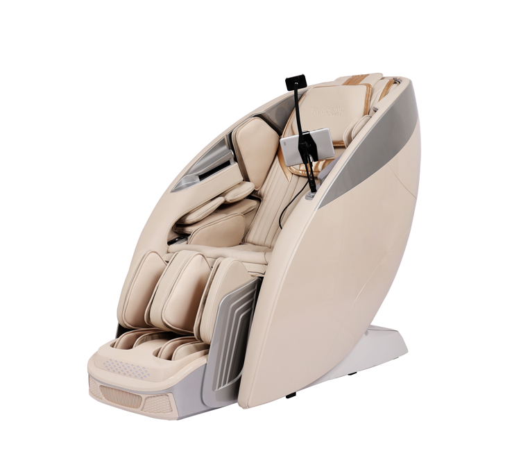 Кресло оснащено 7-дюймовым полноэкранным динамическим ЖК-дисплеем, который обеспечивает интуитивно понятный интерфейс для управления всеми функциями. Запуск осуществляется одним нажатием кнопки, а система автоматического определения положения плеч позволяет адаптировать массаж под индивидуальные особенности пользователя, что делает его использование максимально комфортным.