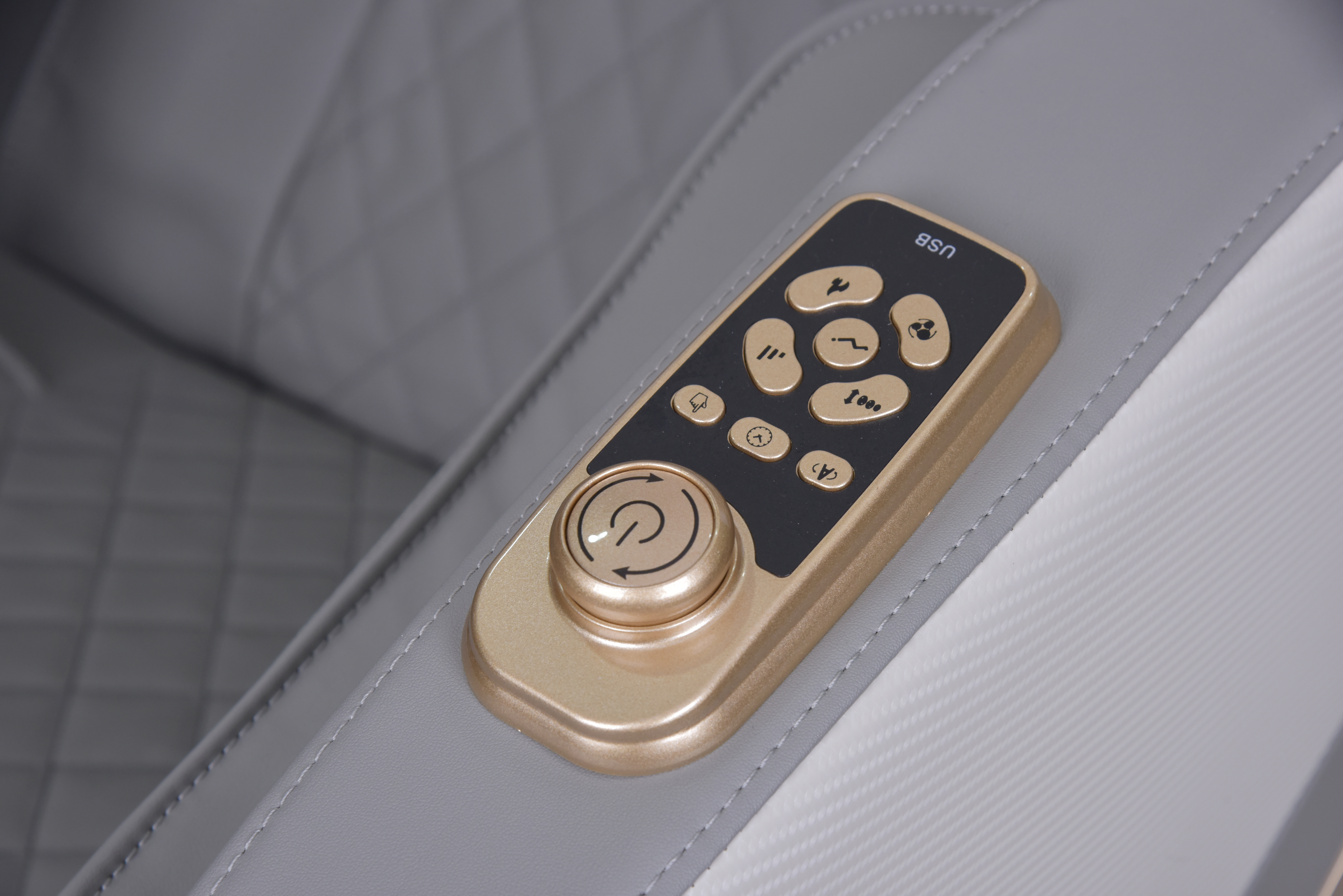 Запуск массажного кресла осуществляется одним нажатием кнопки, а центральная панель управления с горячими клавишами обеспечивает легкий доступ ко всем функциям. Подлокотники кресла также оснащены кнопками быстрого доступа, что делает управление еще более удобным и интуитивно понятным.