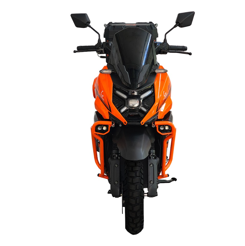 Мощные светодиодные фары и ходовые огни обеспечивают отличную видимость в темное время суток, эффективно освещая дорогу и делая скутер заметным для других участников движения. Светотехника питается от бортового аккумулятора 12 В и не требует замены элементов питания. Информативный дисплей отображает скорость, уровень топлива, пройденное расстояние и другие важные параметры.