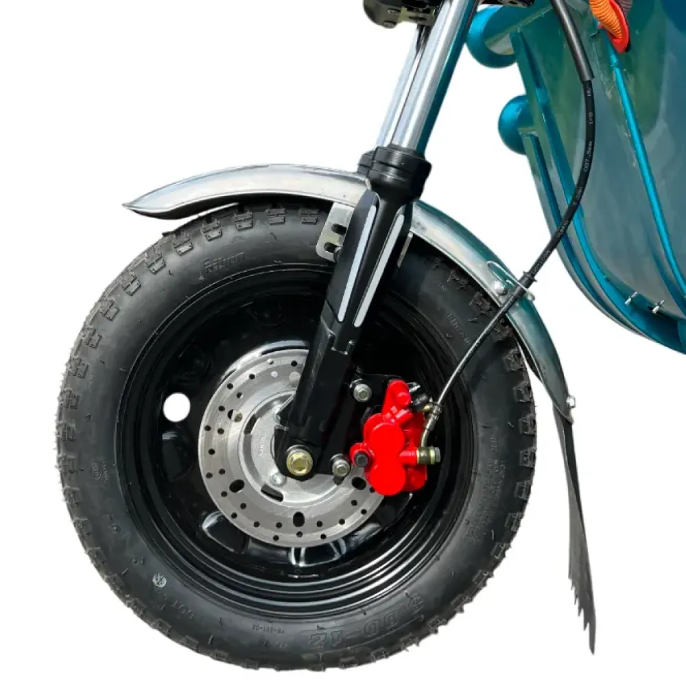 Задний электропривод мощностью 1500 Вт обеспечивает уверенное движение с максимальной скоростью 24 км/ч. Такой скоростной режим оптимален для городских условий и позволяет безопасно маневрировать с тяжелым грузом. Напряжение бортовой сети составляет 60 В.