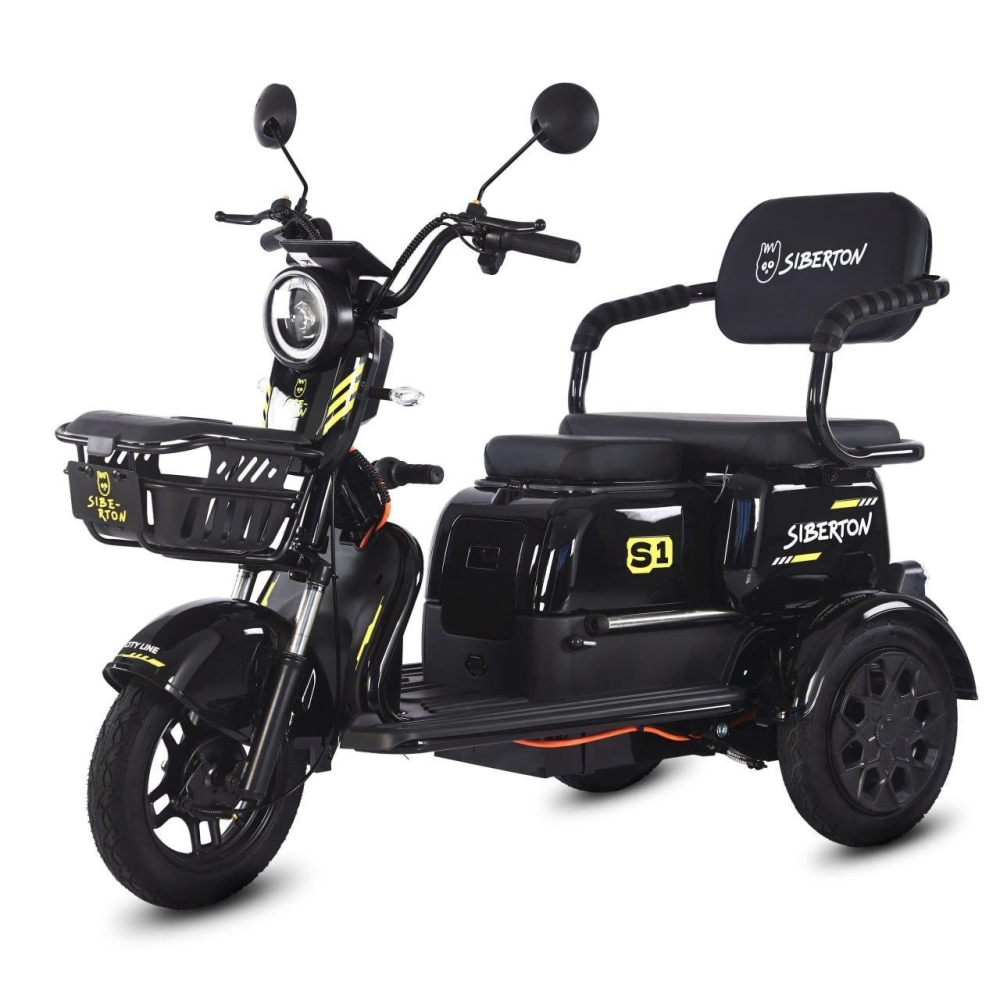 Электротрицикл Siberton S1 создан для комфортных поездок всей семьей, объединяя устойчивость трехколесной конструкции с электрическим приводом. Транспортное средство рассчитано на перевозку двух взрослых пассажиров и одного ребенка на откидном сиденье, что делает его идеальным для ежедневных прогулок и поездок по городу. Максимальная нагрузка составляет 200 кг, включая всех пассажиров и перевозимый груз.