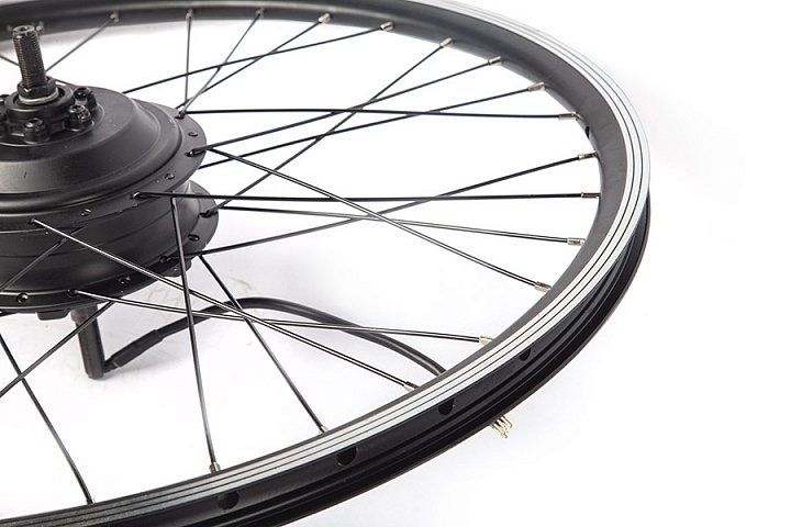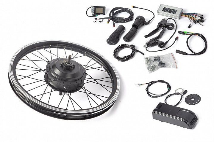 Наш комплект электрификации разработан на базе мотор-колеса Eltreco 36V 350W, смонтированного в двойной 20-дюймовый заспицованный обод переднего колеса. Комплект поставляется в собранном виде, готовый к эксплуатации после установки на ваш велосипед.