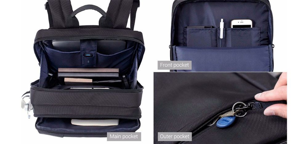 90 Points Classic Business Backpack — немного деловой рюкзак. Бизнес здесь не отсылка к деловому стилю, а скорее к возможности всегда иметь под рукой все необходимое для жизни и работы. Модель сложно назвать маленькой, но и поместится в нее целый арсенал полезных гаджетов и других вещей: разместить ноутбук, планшет, термос, для которого предусмотрен отдельный карман, записные книжки и многое другое и еще останется немного места.