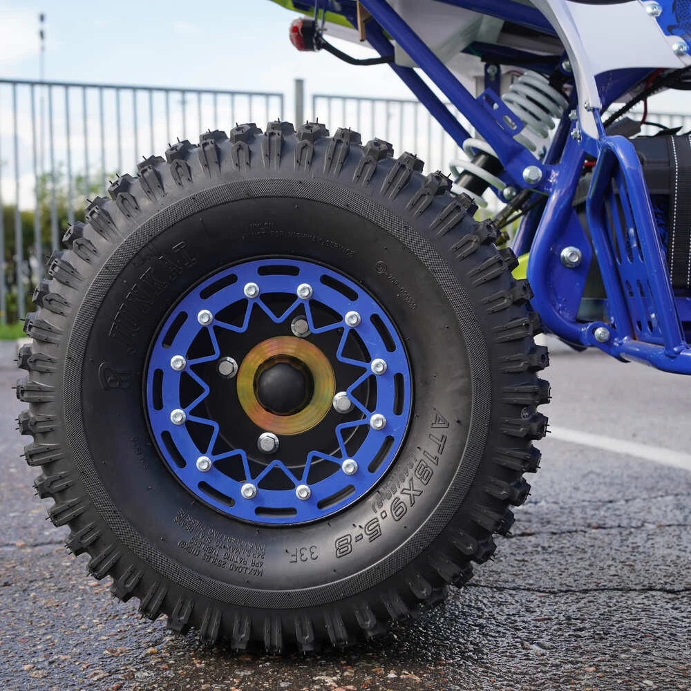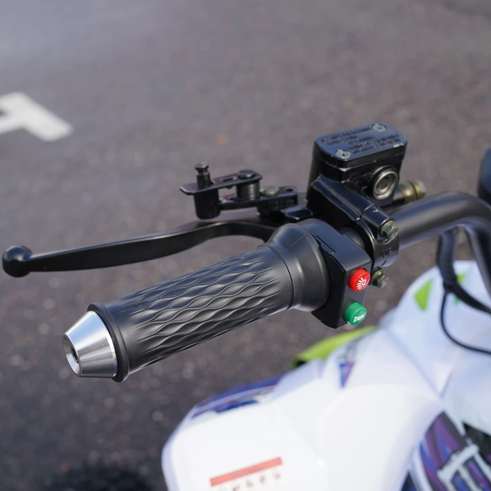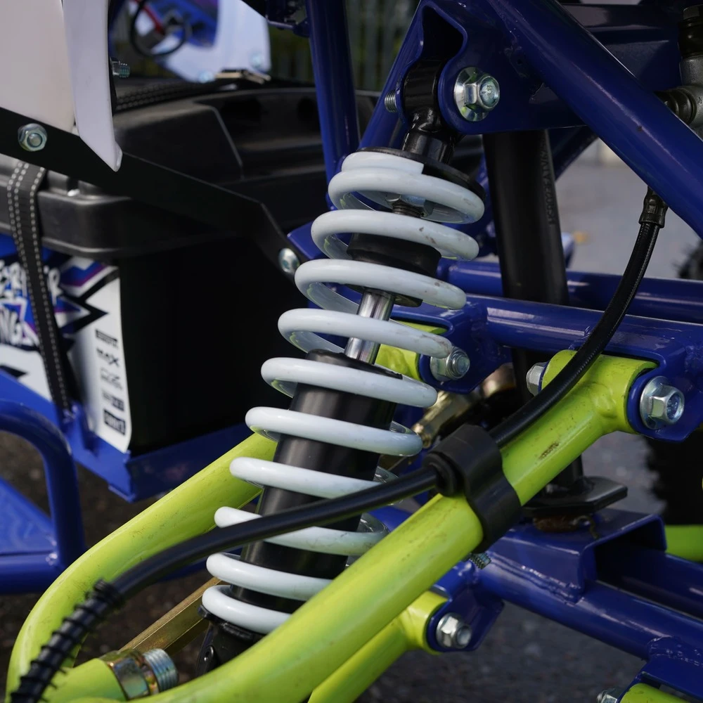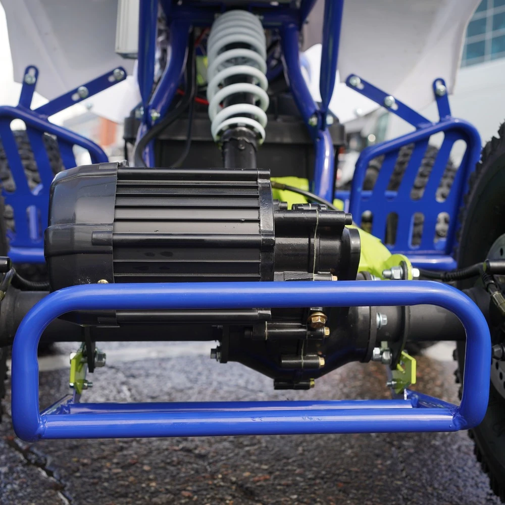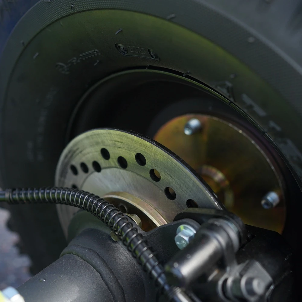 Электроквадроцикл оснащен дисковыми гидравлическими тормозами, которые обеспечивают эффективное и безопасное торможение в любых условиях. Это особенно важно при движении по сложным маршрутам или в условиях плохой видимости, где требуется высокая степень контроля над транспортным средством.