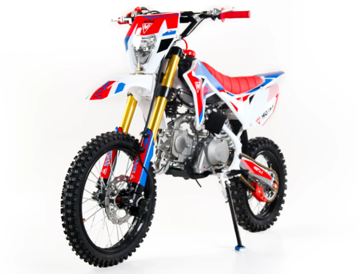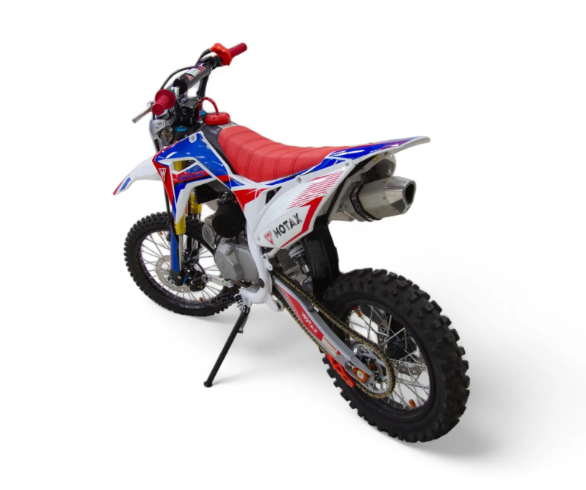 Питбайк MOTAX MX 140 выделяется своей прочной стальной рамой и металлическими колесными дисками, что обеспечивает долговечность и устойчивость к повреждениям. Габариты мотоцикла составляют 1750 мм в длину, 810 мм в ширину и 1060 мм в высоту, что делает его компактным и маневренным на трассе.