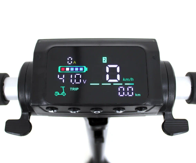 Электросамокат оборудован передним приводом и амортизаторами как спереди, так и сзади, что обеспечивает плавную и комфортную езду даже по неровным поверхностям. Также стоит отметить возможность регулировки руля, которая позволяет адаптировать самокат под индивидуальные предпочтения, что способствует удобству управления.
