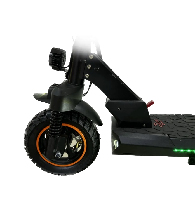 Передняя и задняя пружинная подвеска с амортизаторами обеспечивают плавность хода даже по разбитым дорогам, стыкам асфальта и брусчатке. Спортивный режим позволяет раскрыть весь потенциал 800-ваттного двигателя для максимальной динамики и быстрого ускорения. Светодиодная светотехника с функцией стоп-сигнала повышает безопасность в темное время суток и делает самокат заметным для других участников движения.