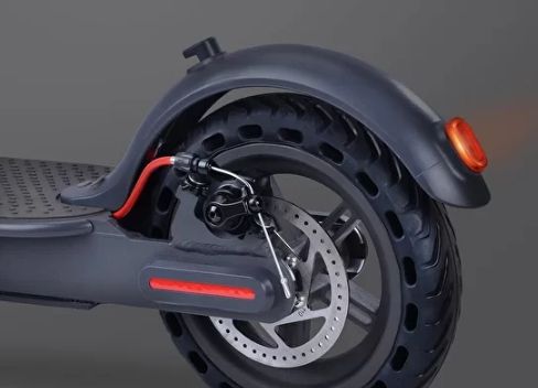 Литые перфорированные шины обеспечивают безопасность на дороге. Дисковой тормоз на заднем колесе гарантирует надежное торможение.