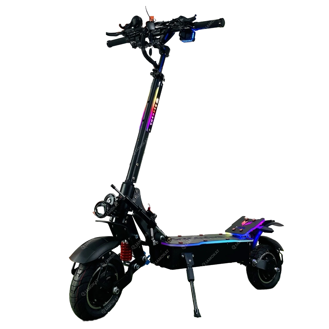 Электросамокат Currus M10 оснащен двумя мощными воздушными амортизаторами. Они выдерживают экстремальные нагрузки и надежные. При этом намного комфортнее обычных пружинных амортизаторов.