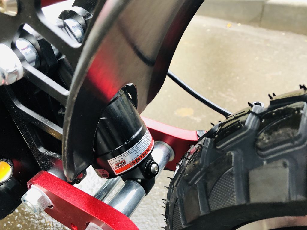 Электросамокат Currus M10 оснащен двумя мощными пневмо амортизаторами. Они выдерживают экстремальные нагрузки и надежные. При этом намного комфортнее обычных пружинных амортизаторов.