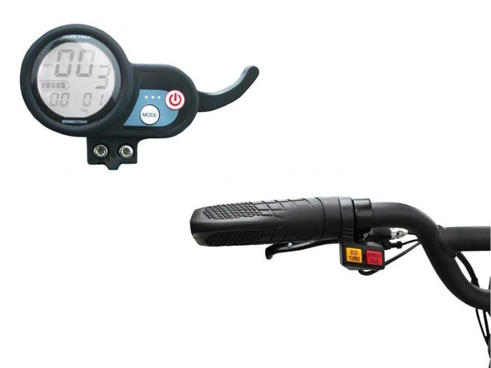 - Самокат может передвигаться на 3-х разных скоростях и выбирать режим ECO-TURBO.