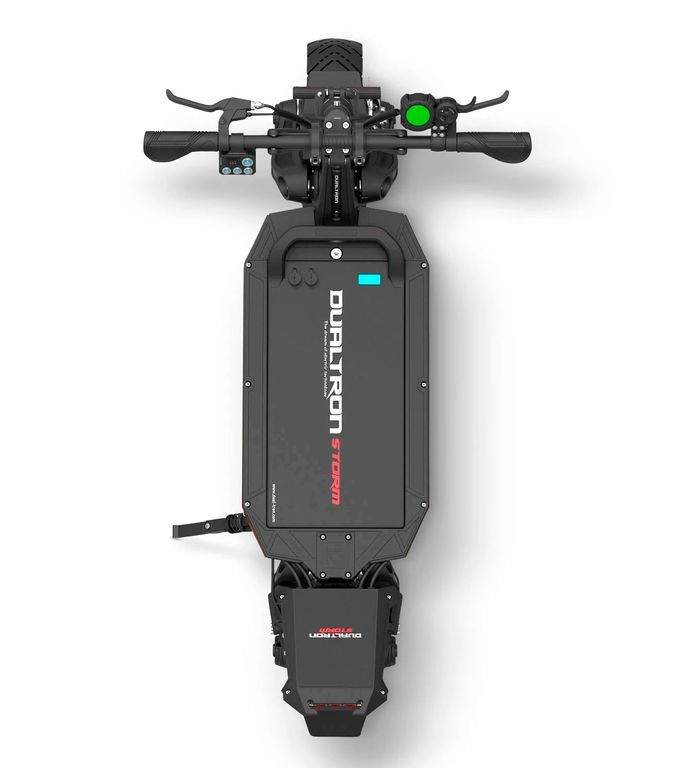 Как и во всех моделях DUALTRON в электросамокате STORM два 11 дюймовых мотор колеса. Но в отличии от предшественников контроллер один. Он имеет два выхода и подаёт на каждый мотор до 40A. Каждое в пике выдает более 3000W, соответственно в полном приводе самокат обладает суммарной мощностью 6700W. Разгон до 100км/ч за несколько секунд вам обеспечен.