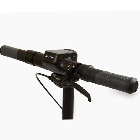 Монолитная конструкция обладает множеством ребер жесткости, что делает электросамокат более устойчивым и управляемым. Корпус проработан таким образом, что вы исключены лишние шумы и скрипы в любом узле. Небольшой стук возможен при отработке неровностей системой подвески. Тросы убраны в рулевую стойку и далее уходят в деку Халтен Флэш, что минимизирует возможные зацепы. Проводка и тормозной трос проходят внутри гофры, что значительно увеличит срок эксплуатации.Flash стартует при помощи толчка ногой, сделано это по причине расположения электродвигателя в заднем колесе. Высота руля не регулируема. Корпус - черный.