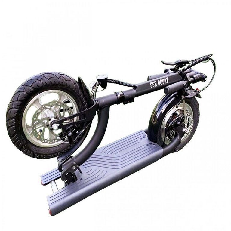 Электросамокат KUGOO ES3 очень отличается от других моделей Kugoo, что делает его особенным во всей линейке. 12-дюймовые пневманические колеса с литыми дисками и клиренс в 10 см позволяют с комфортом передвигаться не только по городским дорогам, но и по бездорожью. Дисковый тормоз установлен на каждом колесе, и по желанию один можно отключить.
