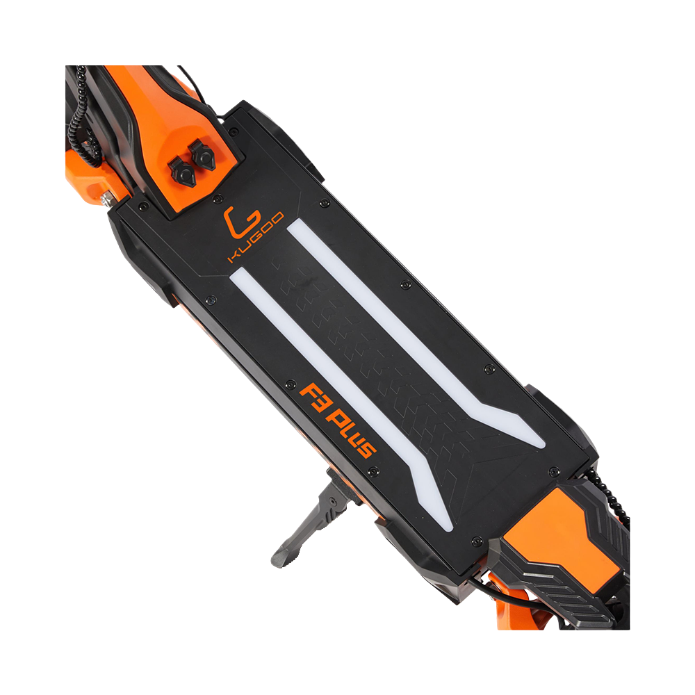Яркая фара и габаритные фонари, а также стоп-сигнал на заднем крыле гарантируют безопасность во время передвижения в ночное время. Это делает KUGOO F3 PLUS идеальным выбором для поездок в любое время суток.