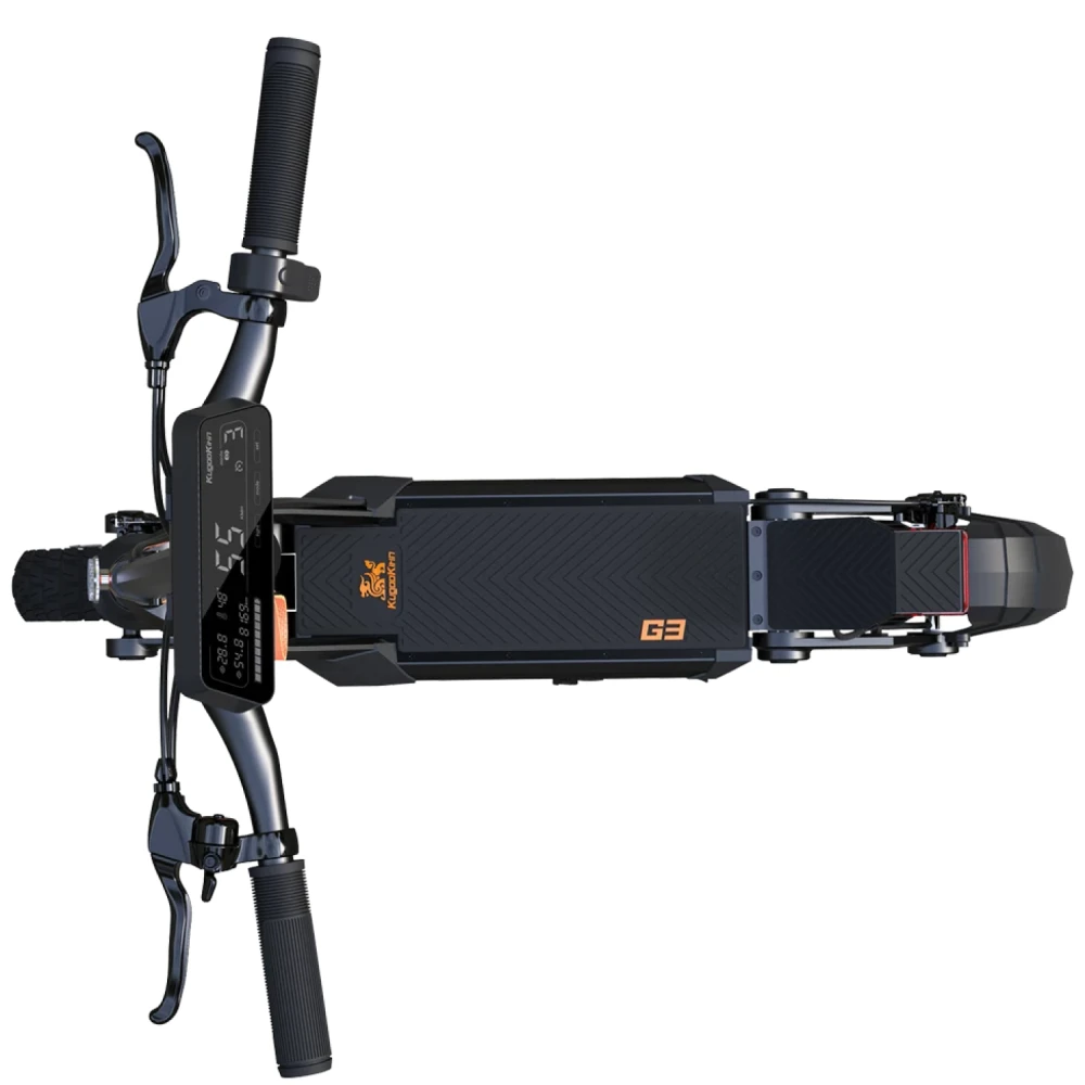 Электросамокат KUGOO G3 также оснащен передними и задними амортизаторами, что обеспечивает отличную амортизацию и комфорт при передвижении по неровным поверхностям. Складная конструкция позволяет удобно транспортировать самокат и хранить его в ограниченном пространстве, а вес в 26.18 кг делает его достаточно легким для переноски.