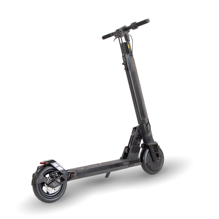 Мотор-колесо расположено спереди. Колеса пневматические, сзади установлена система амортизации. Материалы самоката очень качественные и отлично подогнаны.