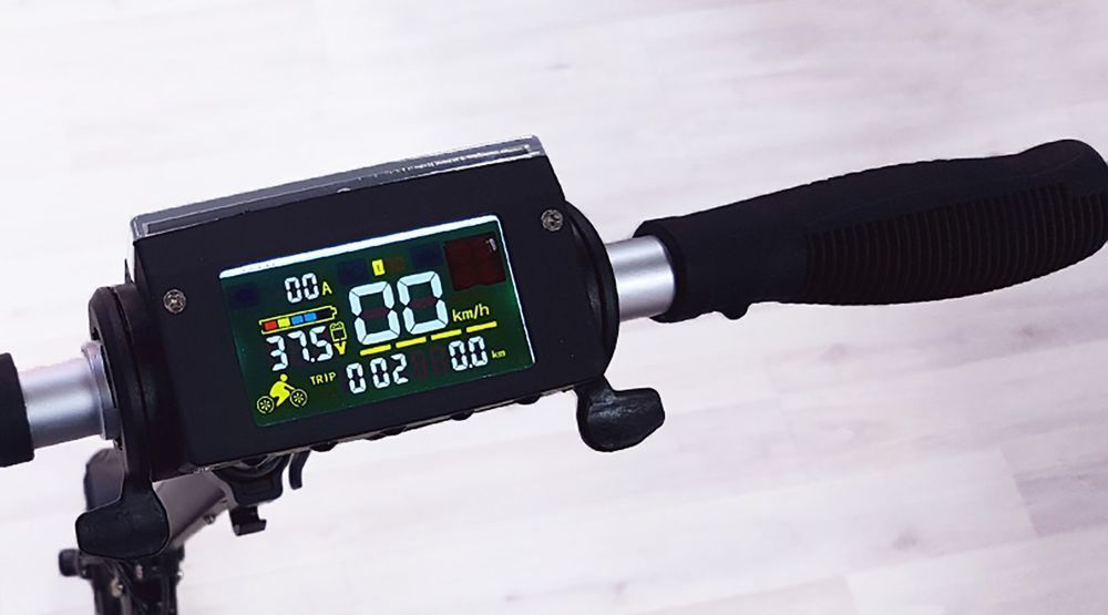 Комфорт в пути обеспечивается двумя амортизаторами, которые сглаживают неровности дороги. Дека с полоской "наждачки" посередине предотвращает скольжение, а информативная панель бортового компьютера отображает все необходимые данные: текущую скорость, режим и заряд аккумулятора.