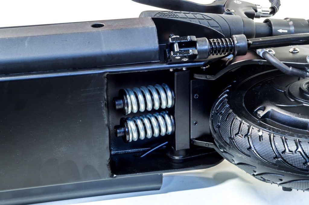 - Маневренный электросамокат Speedway Mini 4 Pro, оборудованный передними и задними амортизаторами. Изделие вполне пригодно для езды по бездорожью. Во время передвижения вы не почувствуете ямы и кочки.