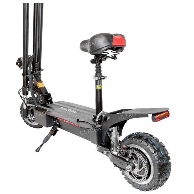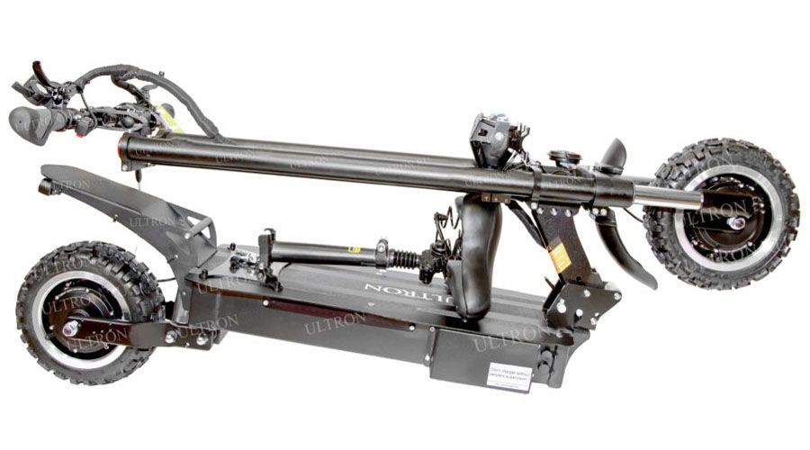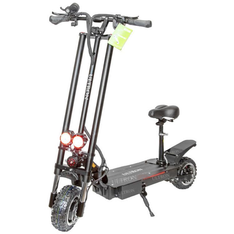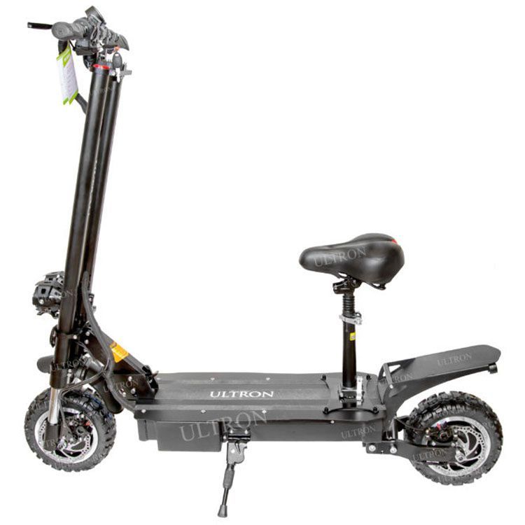 Данная модель является одной из самых мощных в ассортименте компании Ultron. Высокие характеристики обеспечиваются наличием двух электромоторов. Максимальная скорость достигает 85 км/ч. Этого достаточно для быстрого передвижения по дорогам общего пользования. Устройство отличается нестандартной вилкой переднего колеса. Также в конструкции присутствует сиденье и подножка для парковки.