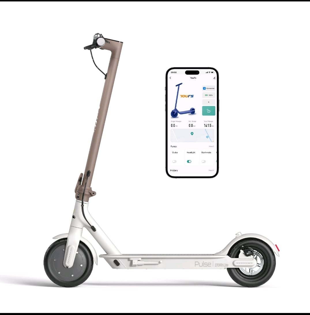Самокат оснащен 8-дюймовыми колесами, которые обеспечивают хорошую маневренность и комфорт при движении по различным дорожным покрытиям. Наличие фар и ходовых огней гарантирует вашу безопасность в темное время суток.