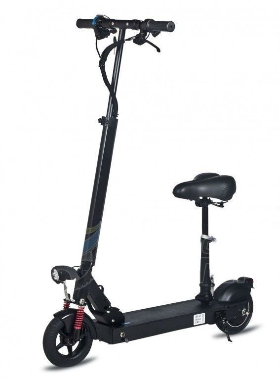- Электрический самокат также оснащен двойной системой амортизации, что способствует плавной поездке и помогает без труда преодолевать любой бордюр и другие возвышенности.