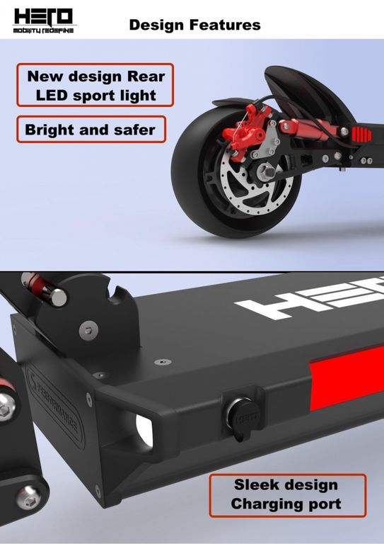 - Настраиваемая LED-подстветка по кругу деки позволит вам кастомизировать внешний вид вашего нового электросамоката HERO. Делать это можно и через приложение на смартфоне.