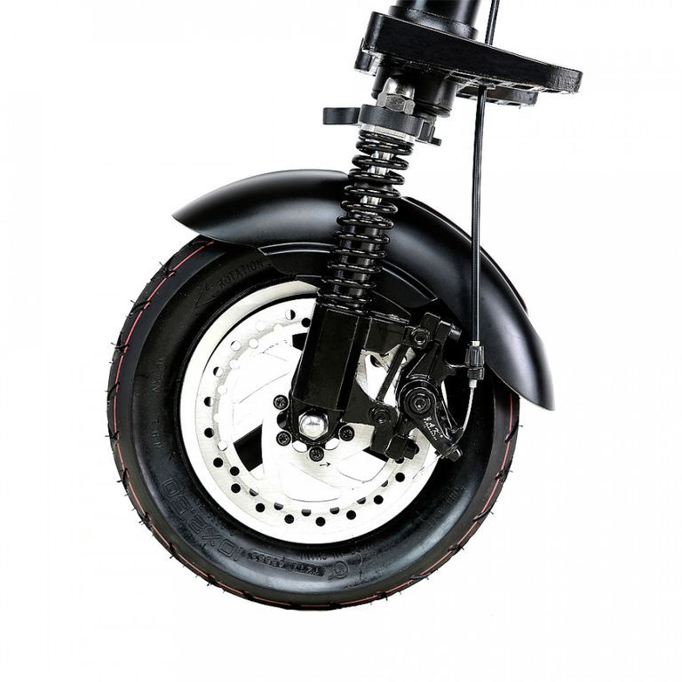 - Десятидюймовые пневматические колеса позволяют передвигаться и по городскому асфальту, и по парковой грунтовке.