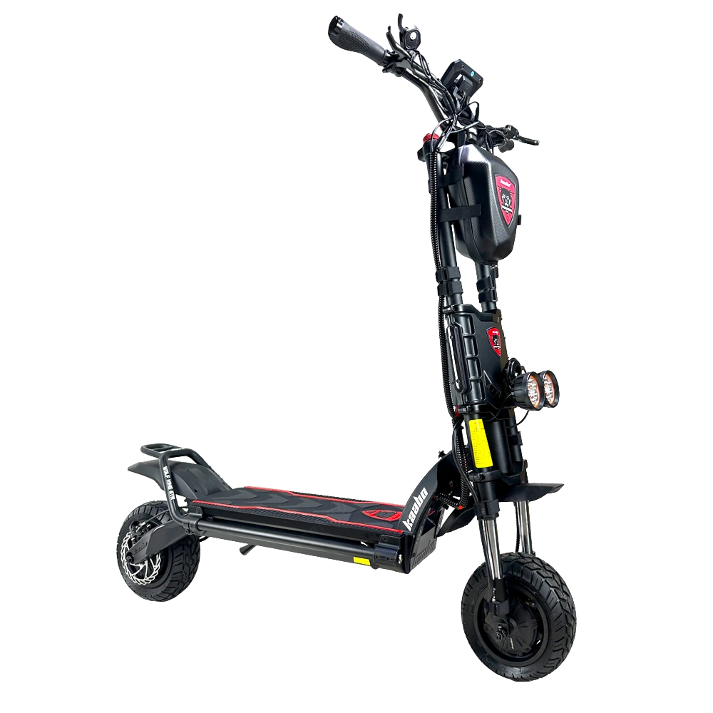 Но эта мощь — управляемая и умная. Благодаря полному приводу, эта энергия передаётся на дорогу максимально эффективно. На сухом асфальте — это рекордное ускорение. На мокрой дороге или грунте — это уверенное и безопасное сцепление, без пробуксовок. Вы управляете не просто самокатом, вы управляете потоком чистой энергии, который послушно направляется туда, куда нужно вам. Максимальная скорость в 105 км/ч — это не предел, а комфортный крейсерский режим, на котором аппарат чувствует себя устойчиво и собранно, благодаря массе в 67 кг и продуманной геометрии.