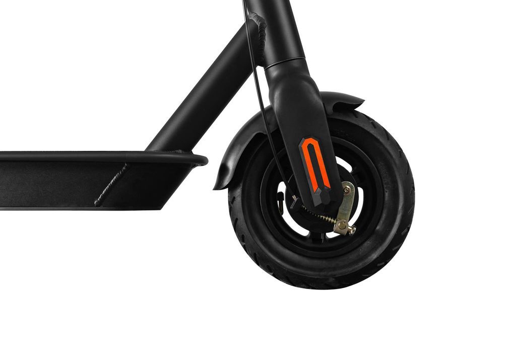- Колеса диаметром 10 дюймов в паре с пружинными амортизаторами эффективно сглаживают вибрации и неровности на дороге.