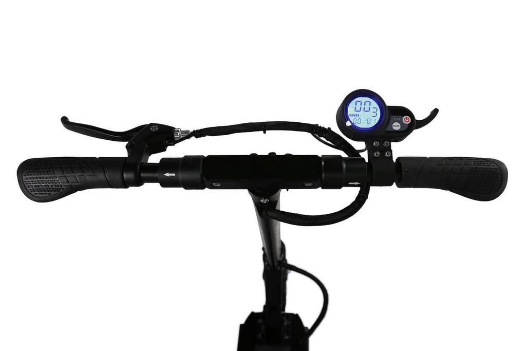 На правой ручке руля расположен информативный LED-дисплей, который позволяет отслеживать все важные параметры во время езды: скорость, пробег, заряд батареи. На приборной панели вы также можете настроить чувствительность электронного тормоза, выбрать режим круиз-контроля, а также выбрать способ старта электросамоката.