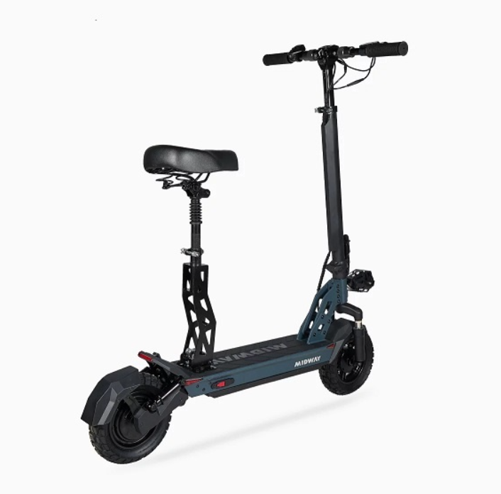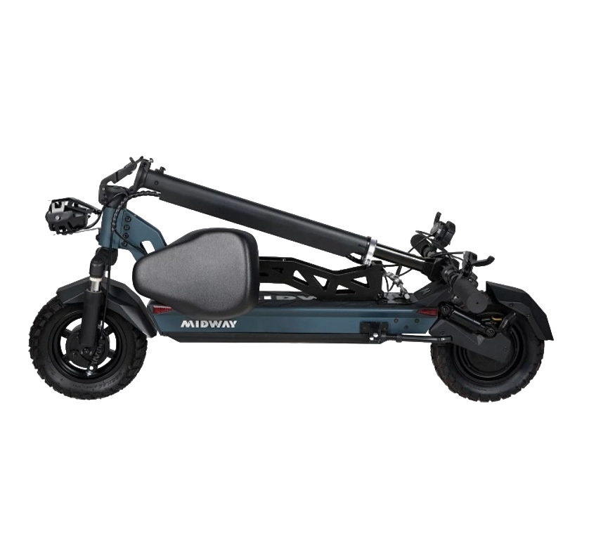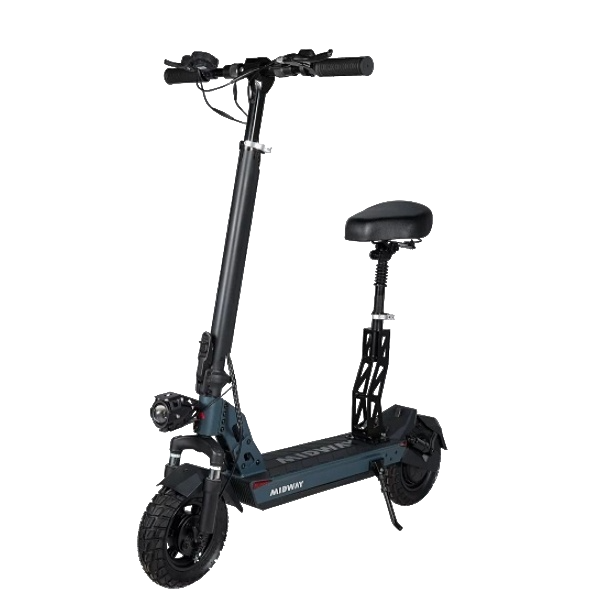 MIDWAY TANK Plus оснащён амортизацией спереди и сзади, что значительно повышает комфорт при езде по неровным поверхностям. Наличие сиденья добавляет удобства во время длительных поездок.