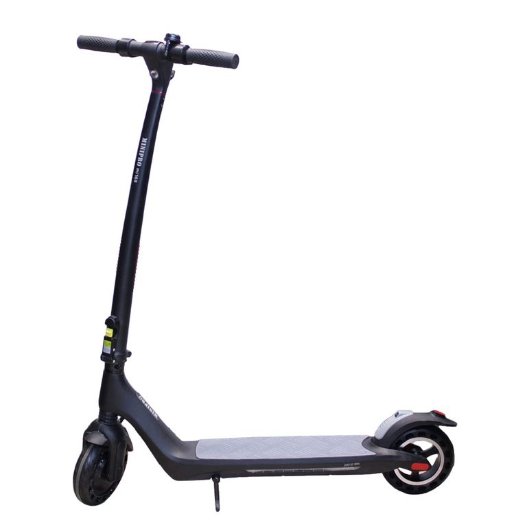 - Самокат имеет два типа тормоза: передний рекуперативный и задний механический. Помимо функции торможения, первый способен подзарядить аккумулятор, перенаправляя энергию от остановки обратно в батарею.