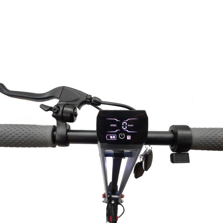 Бортовой компьютер на ЭЛЕКТРОСАМОКАТЕ MINIPRO MI606 полностью сенсорный, без кнопок. С помощью него можно следить за уровнем заряда батареи, включать и выключать фары и переключать режим езды (всего их 3).