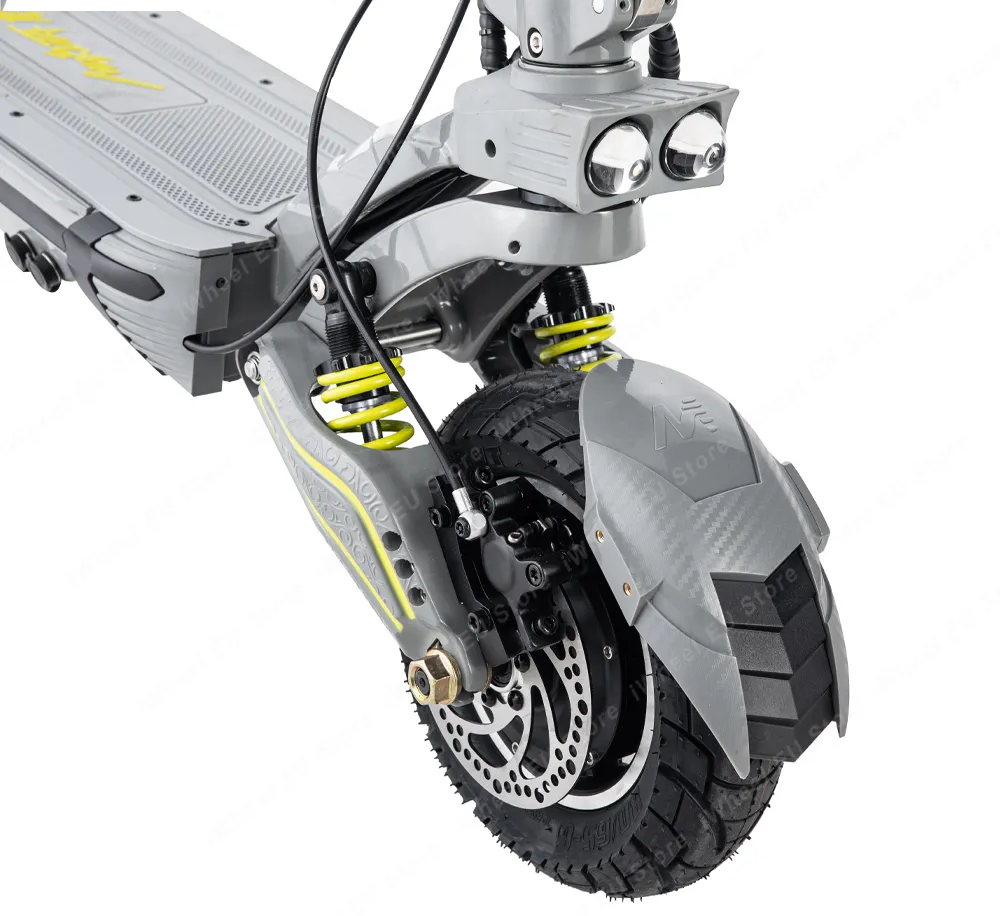 Mukuta 10 Plus оснащён надувными колесами диаметром 10 дюймов, что обеспечивает отличную амортизацию и комфорт во время езды. Гидравлические тормоза обеспечивают надежное торможение, а наличие амортизаторов повышает уровень комфорта на неровных поверхностях.