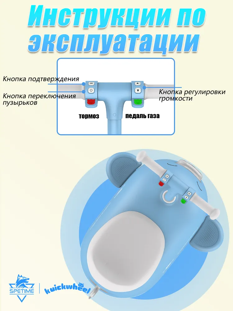 Удобный акселератор для большого пальца позволяет легко управлять скоростью, а наличие музыкального сопровождения добавляет веселья во время поездок. Просторное багажное отделение под съемным сидением позволяет ребенку брать с собой игрушки или личные вещи.