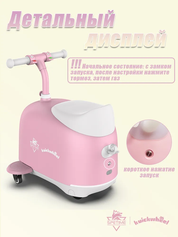 Детский электромобиль-чемодан 2в1 предлагает множество инновационных функций, включая Bluetooth и мобильное приложение. Это позволяет настраивать подсветку, ограничивать скорость и включать специальный «Режим родителя» для полной безопасности.
