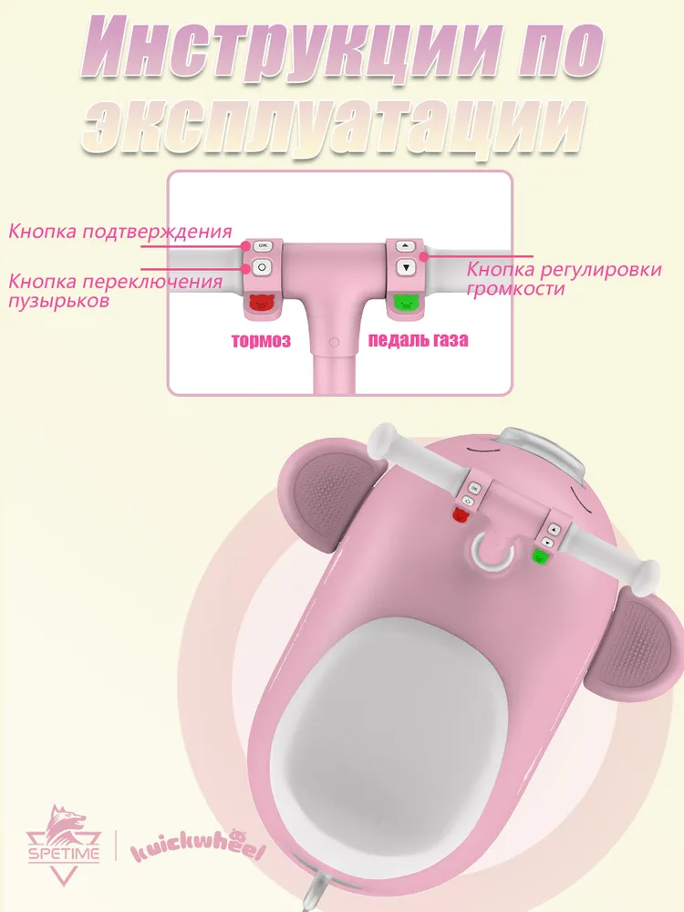 Модули подсветки, такие как модуль носа свинки и задняя атмосферная подсветка, создают яркую атмосферу и автоматически включаются при старте. Специальные режимы езды «Малыш», «Детский» и «Родительский» позволяют настраивать ограничения по скорости, чтобы малыш мог наслаждаться поездкой в безопасных пределах.