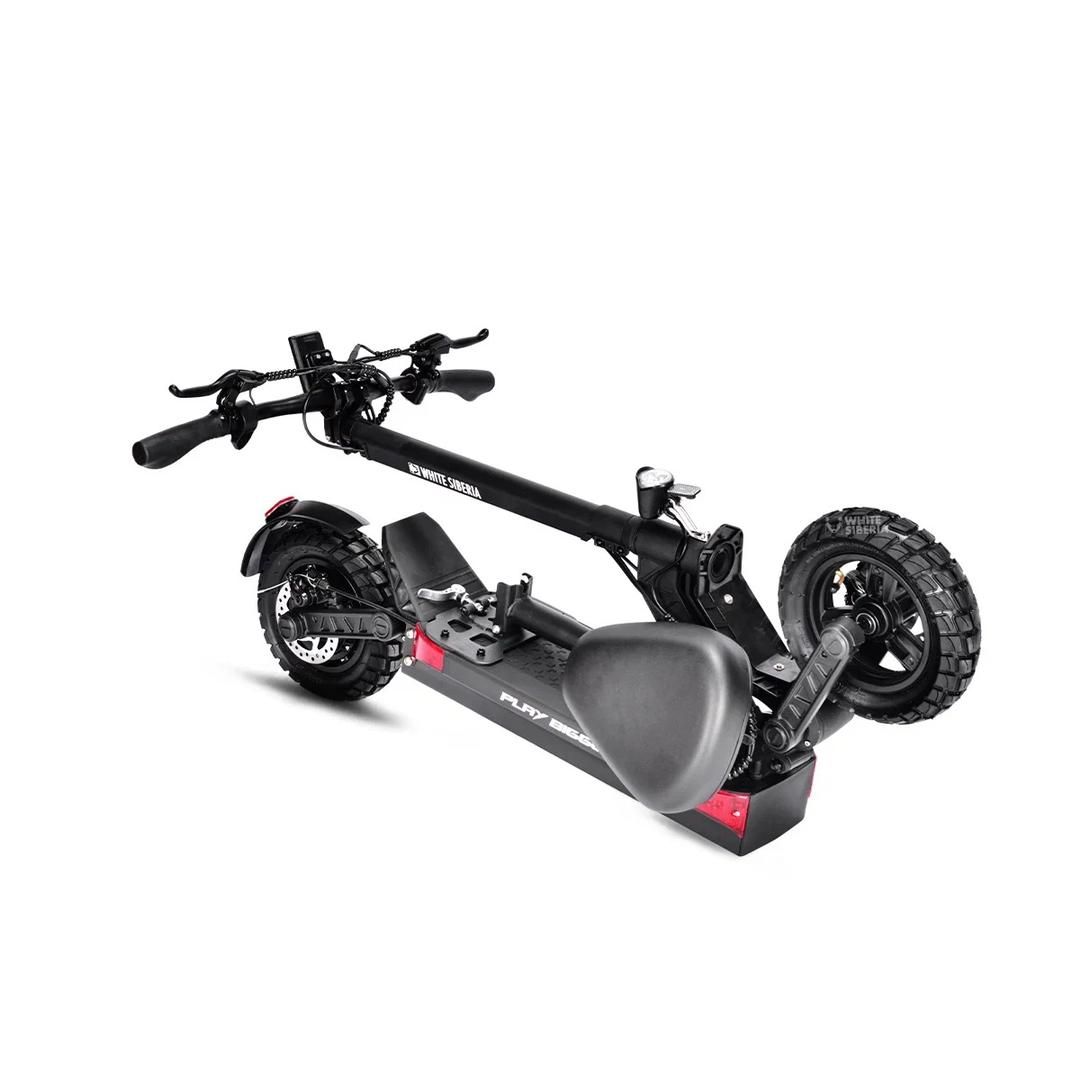В остальном, это все тот же универсальный и комфортный электросамокат, способный удовлетворить потребности практически любого неискушенного пользователя. Среди преимуществ наличие подвески как спереди, так и сзади, аккумулятор 48 В 18Ач, седло идущее в комплекте и регулируемый по высоте, да еще и складной, руль. А связка мотор-контроллер позволит разгоняться до 45км/ч и проезжать на первой скорости до 45 км.