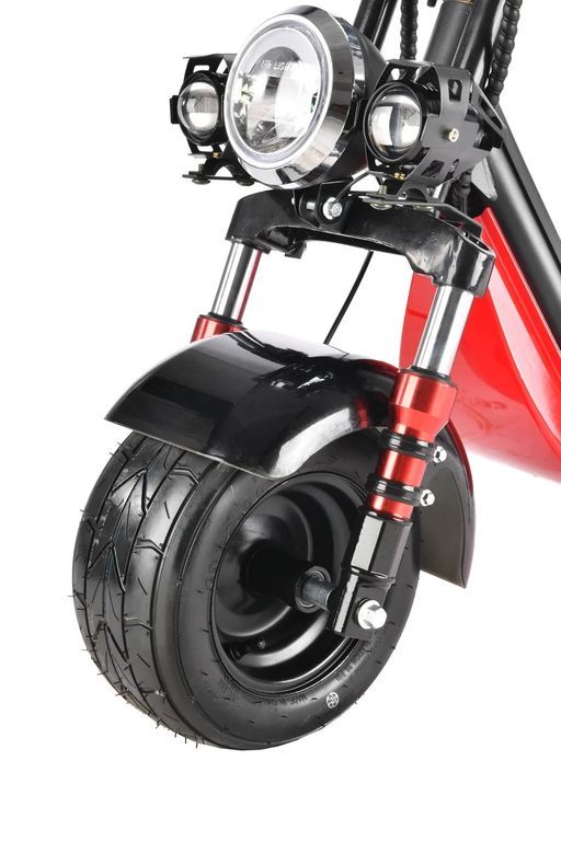 Электроскутер предлагает комфортную подвеску с масляными амортизаторами, которые можно настраивать под индивидуальные предпочтения. 10-дюймовые колеса с высоким профилем обеспечивают отличную амортизацию, смягчая неровности дороги.