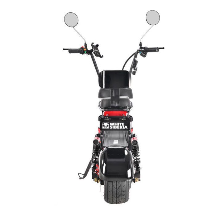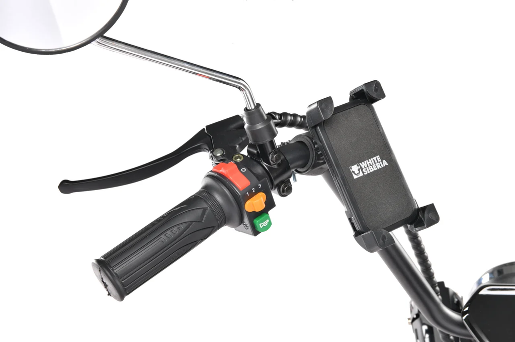 WHITE SIBERIA MINI R 2 оборудован дисковыми тормозами с возможностью регулировки, что обеспечивает надежное торможение. Мощная фара и яркие задние огни обеспечивают отличную видимость в темное время суток, а большие зеркала без искажения помогают следить за дорожной обстановкой.