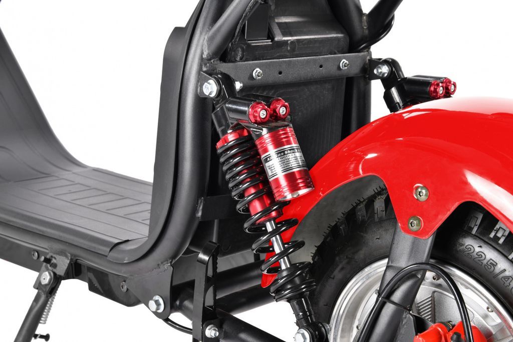 Электроскутер оснащен передними и задними амортизаторами мотоциклетного типа, что обеспечивает плавность хода даже на неровных дорогах. Это особенно важно для городских условий, где качество покрытия может варьироваться. Кроме того, дисковые гидравлические тормоза гарантируют надежное и безопасное торможение в любых ситуациях.