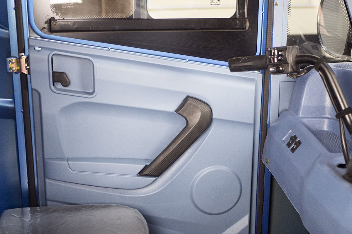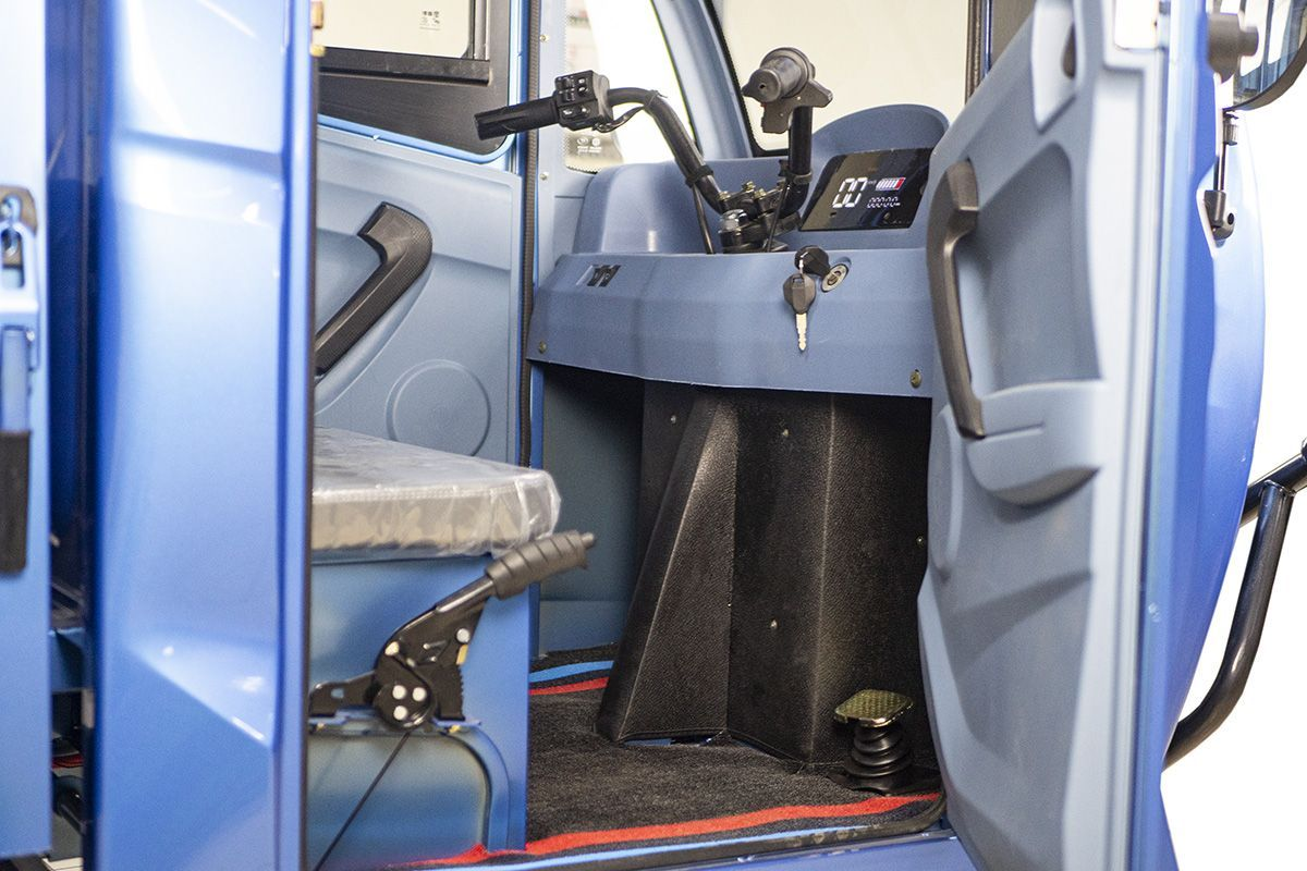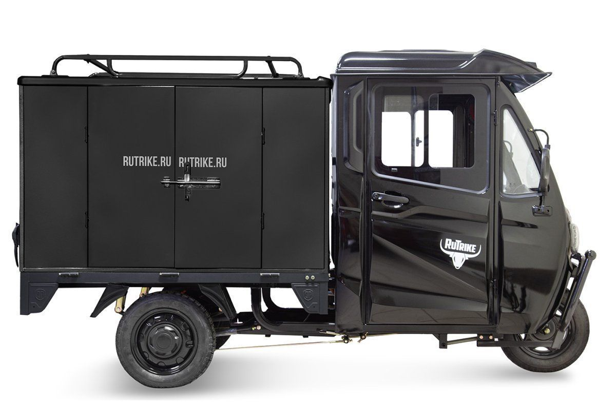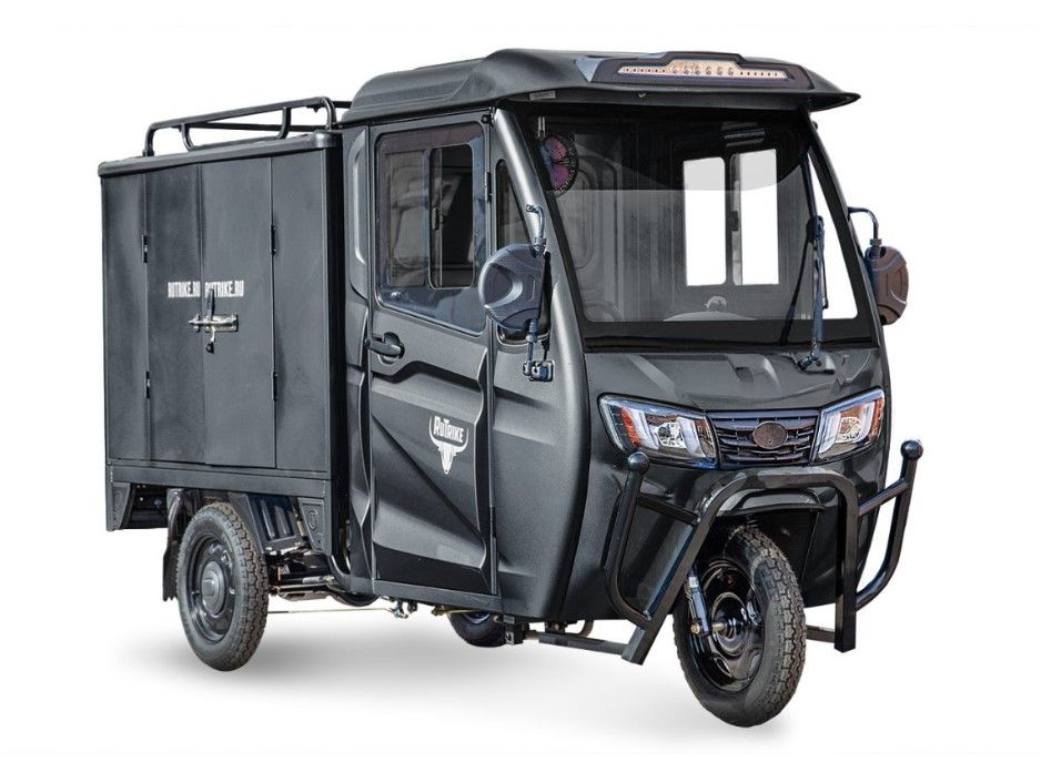 Конструкция Rutrike КАРГО Кабина продумана до мелочей. Барабанные тормоза на передней и задней оси обеспечивают надежное торможение, что особенно важно при перевозке тяжелых грузов. Передняя гидравлическая вилка и рессорная задняя подвеска (с пятью листами) гарантируют плавный ход и отличную управляемость даже на неровных дорогах. Колеса диаметром 12 дюймов обеспечивают стабильность и маневренность, что делает этот трицикл идеальным для городских условий.