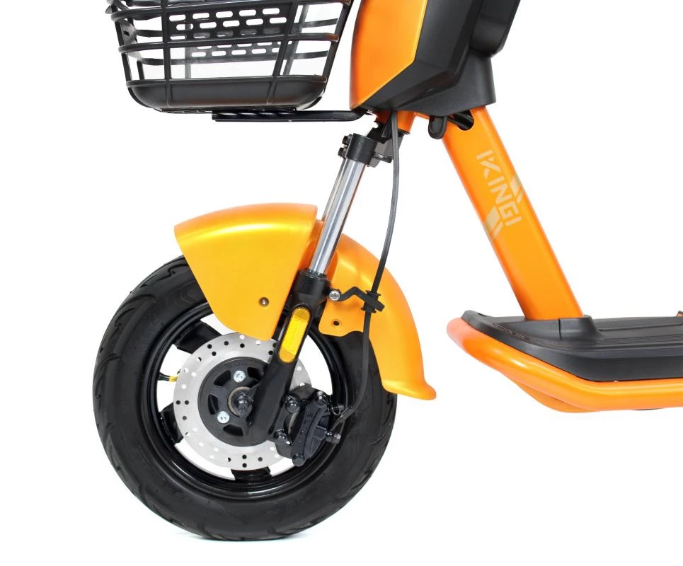 IKINGI XC-3 выполнен из прочной стали, что гарантирует долговечность и надежность. Стильный желтый цвет придает скутеру современный и привлекательный вид, который отлично вписывается в городскую атмосферу. Диаметр колес составляет 16 дюймов, что обеспечивает отличную маневренность и устойчивость на дороге.