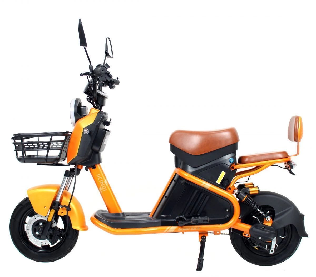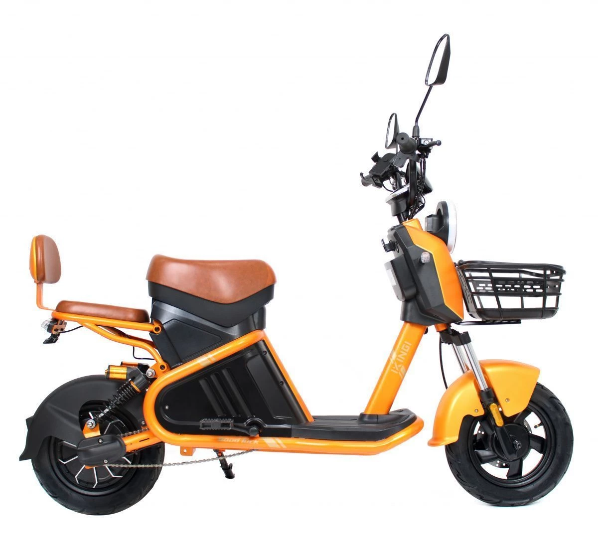 IKINGI XC-3 также оснащен мощной фарой, что значительно увеличивает видимость в темное время суток и обеспечивает дополнительную безопасность. Удобное сиденье, подножка и корзина делают его комфортным для длительных поездок и удобным для перевозки вещей. Наличие зеркал и передних и задних поворотников позволяет водителю лучше контролировать ситуацию на дороге.